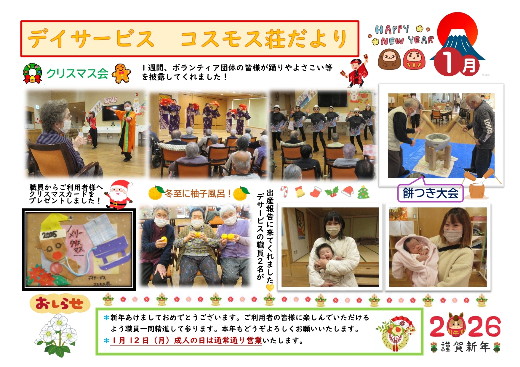 コスモス荘においでいただき、入浴・排せつ・食事の介護、その他全般にわたる支援及び機能訓練を行います。